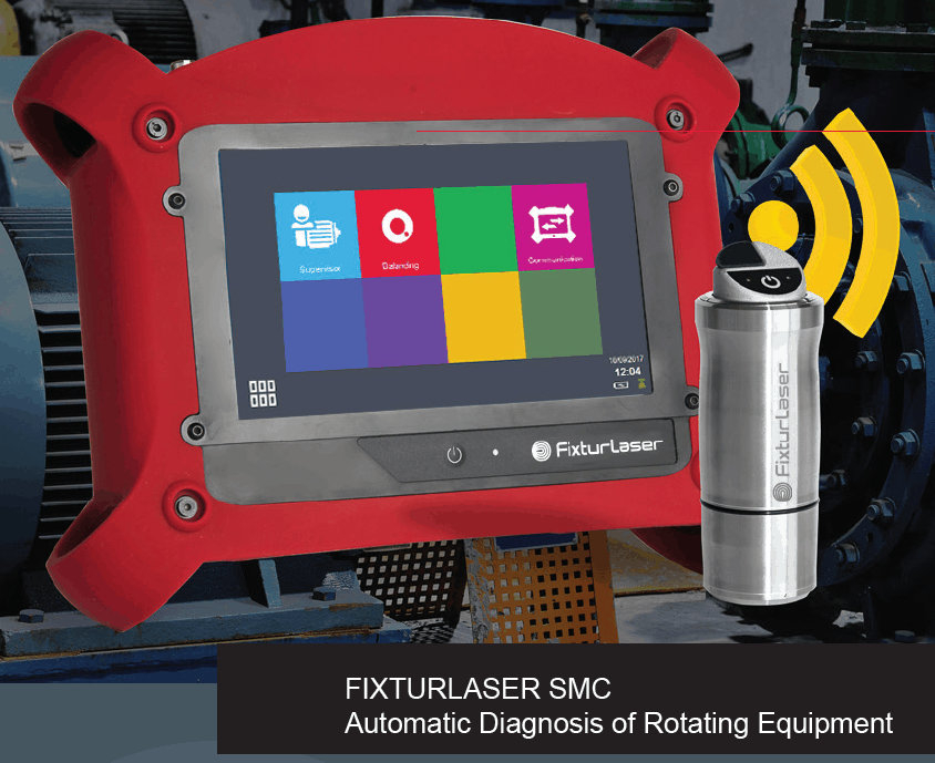 Fixturlaser SMC machinery analyzer offers automatic diagnosis of machine faults, plus a built in camera, pyrometer, stroboscope and wireless tri-axial sensor.